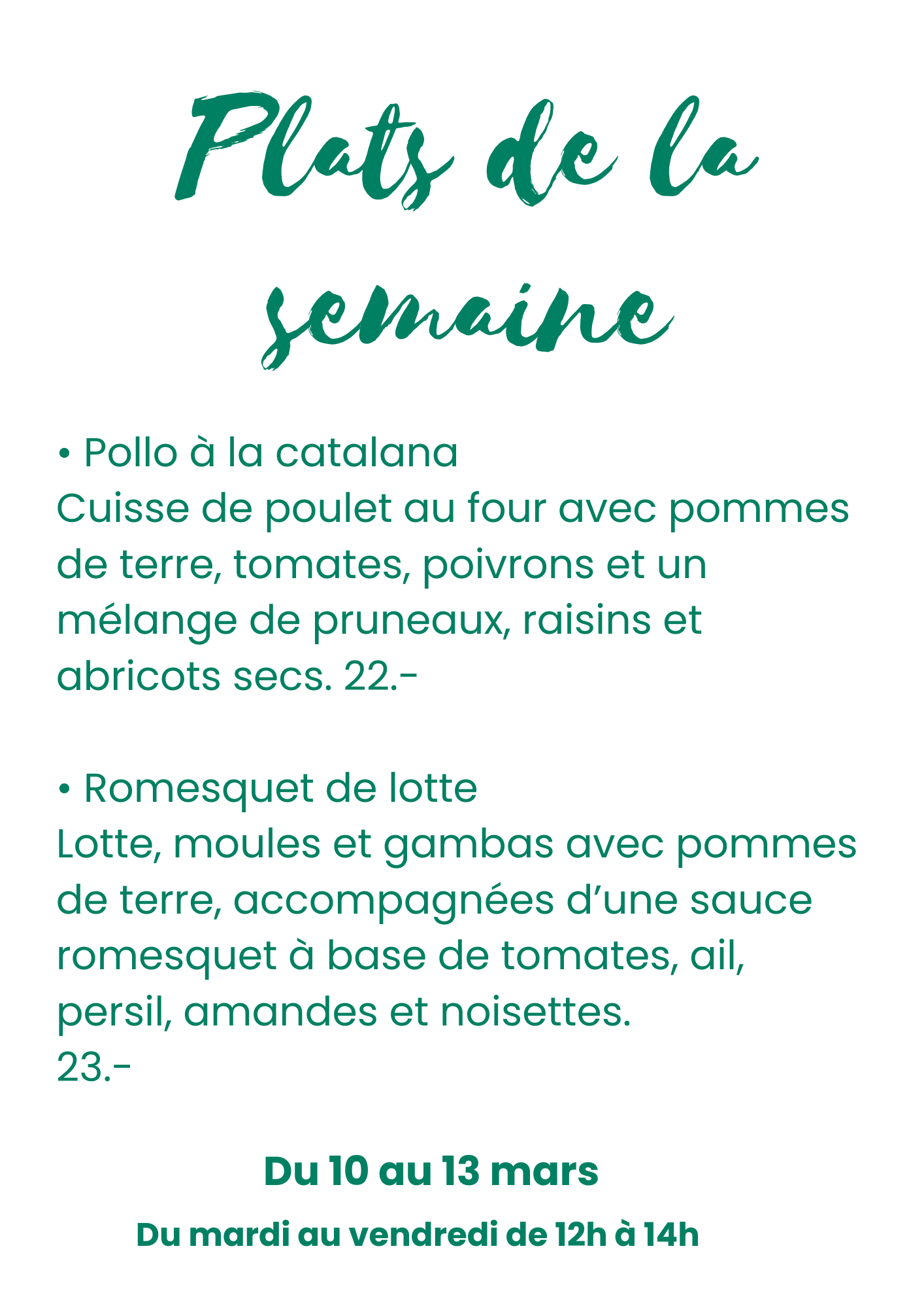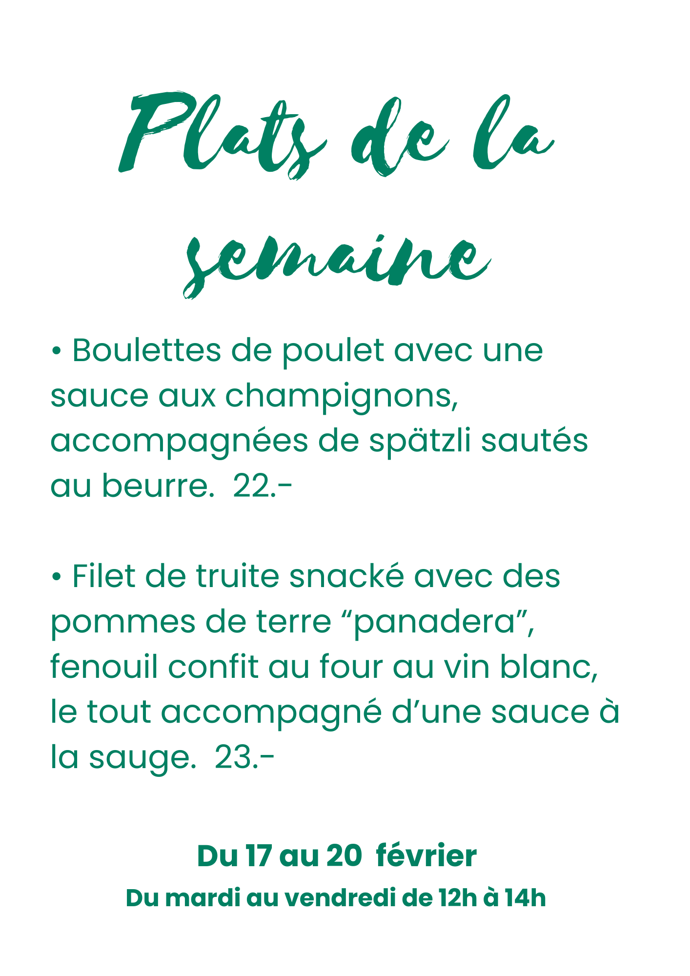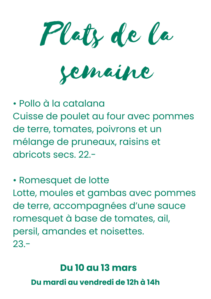 Merci d’informer notre personnel de vos allergies et intolérences. Tous nos prix sont en chf, tva incluse